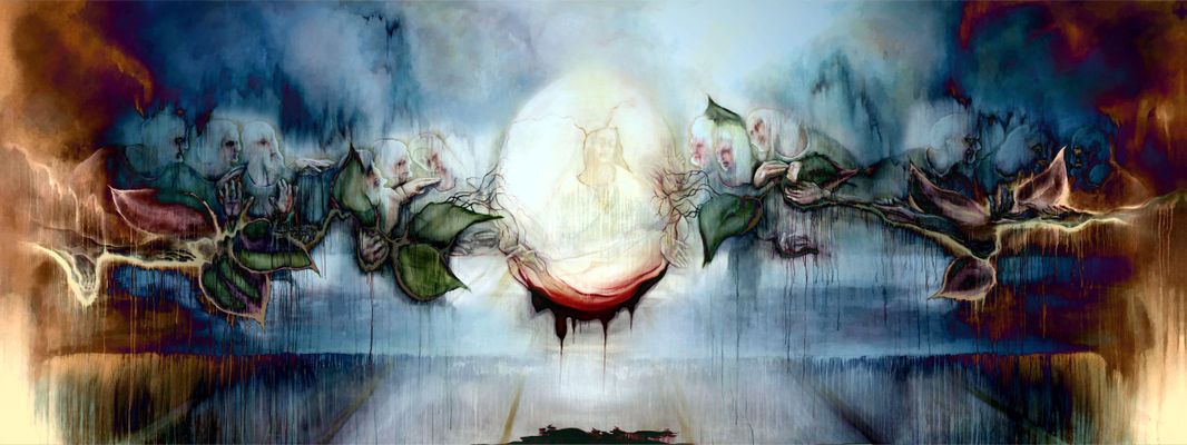 Peter was inspired by Leonardo da Vinci's Last Supper for his project Aan Tafel. He created a life-size interpretation on a 650 cm. x 250 cm. canvas. By combining traditional craftsmanship with modern audio-visual techniques, he explores new artistic expressions. Peter connects sensory experiences like sound, visuals, and scent with philosophy and spirituality.